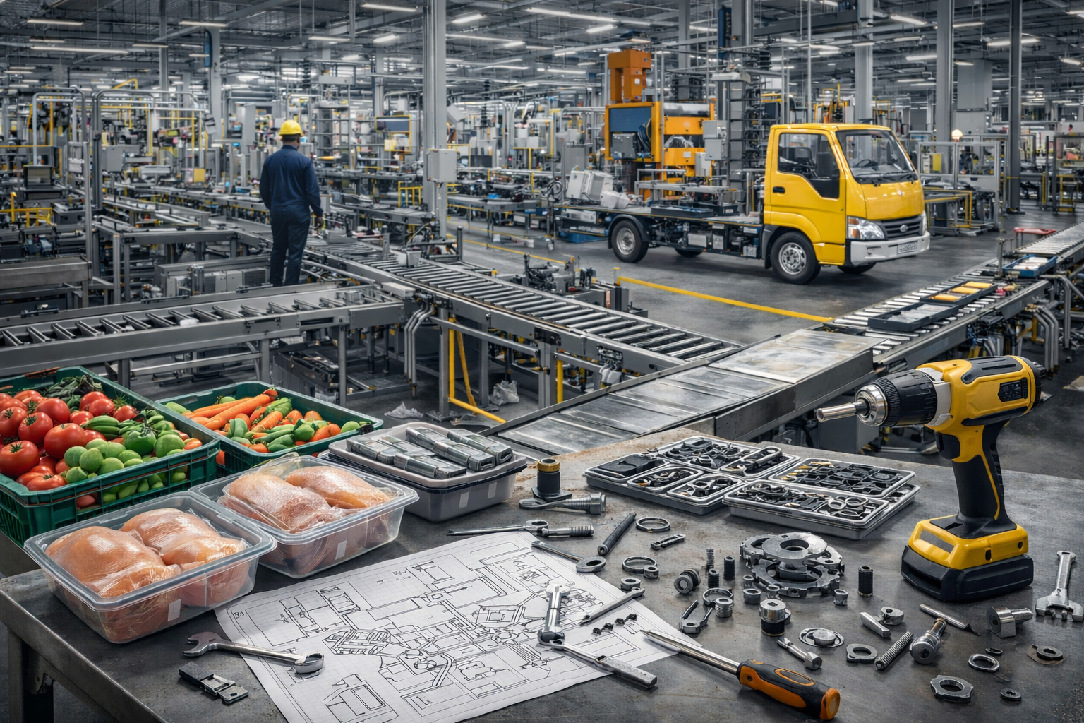 Setup of small to medium industrial factories, including assembly lines, light manufacturing, and production environments.