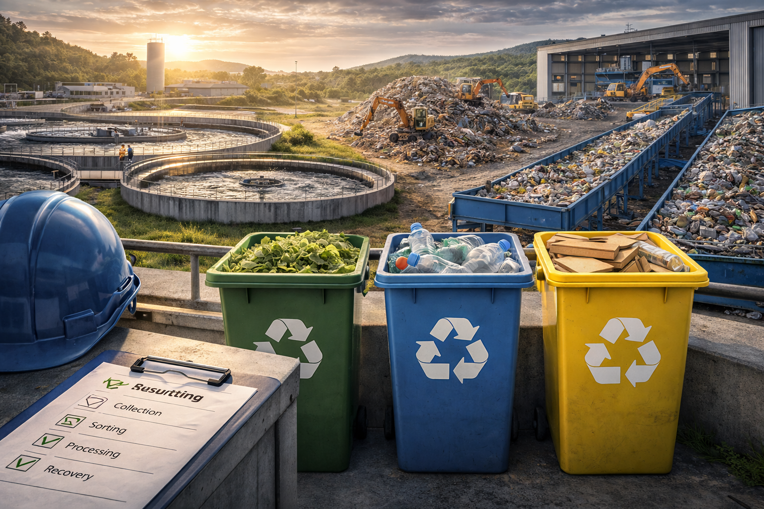 Industrial water treatment, wastewater handling, waste management, and recycling systems supporting sustainable operations.