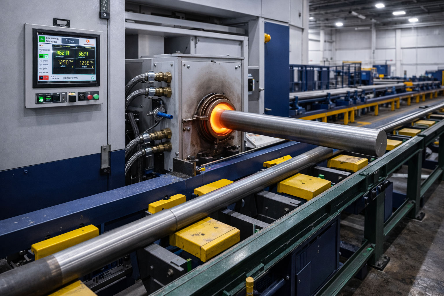 For components requiring shape modification, localized heating is applied using controlled induction systems. Heat is introduced only in specific zones, such as rod ends or connection areas, avoiding unnecessary thermal stress along the full length of the component. This controlled approach prepares material for forming operations while preserving overall geometry and material integrity.