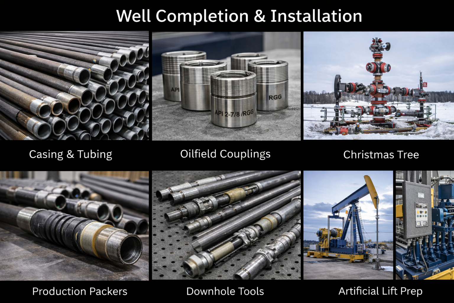 After drilling, casing and tubing are installed using precision-machined couplings, downhole tools, production packers, and wellhead assemblies such as Christmas trees. Artificial lift components are prepared to enable controlled and long-term production from the well.